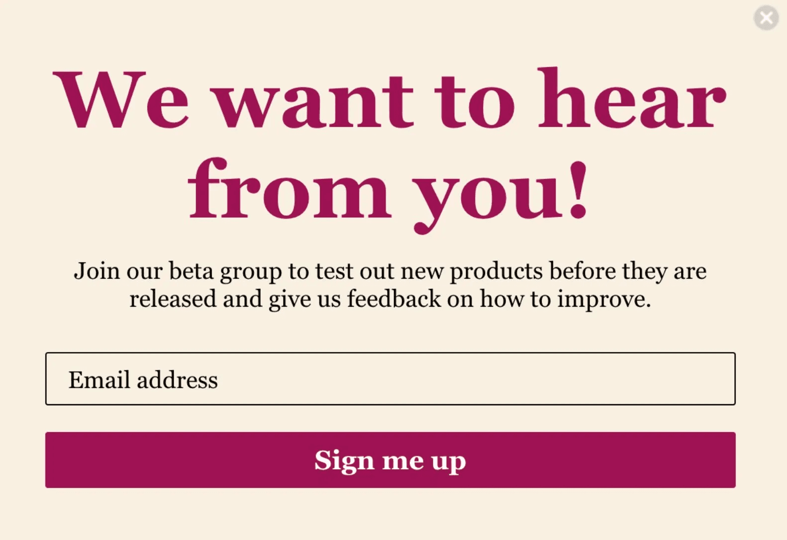 You can have a popup for VIP subscribers if they want to be in a product testing group